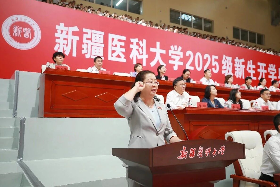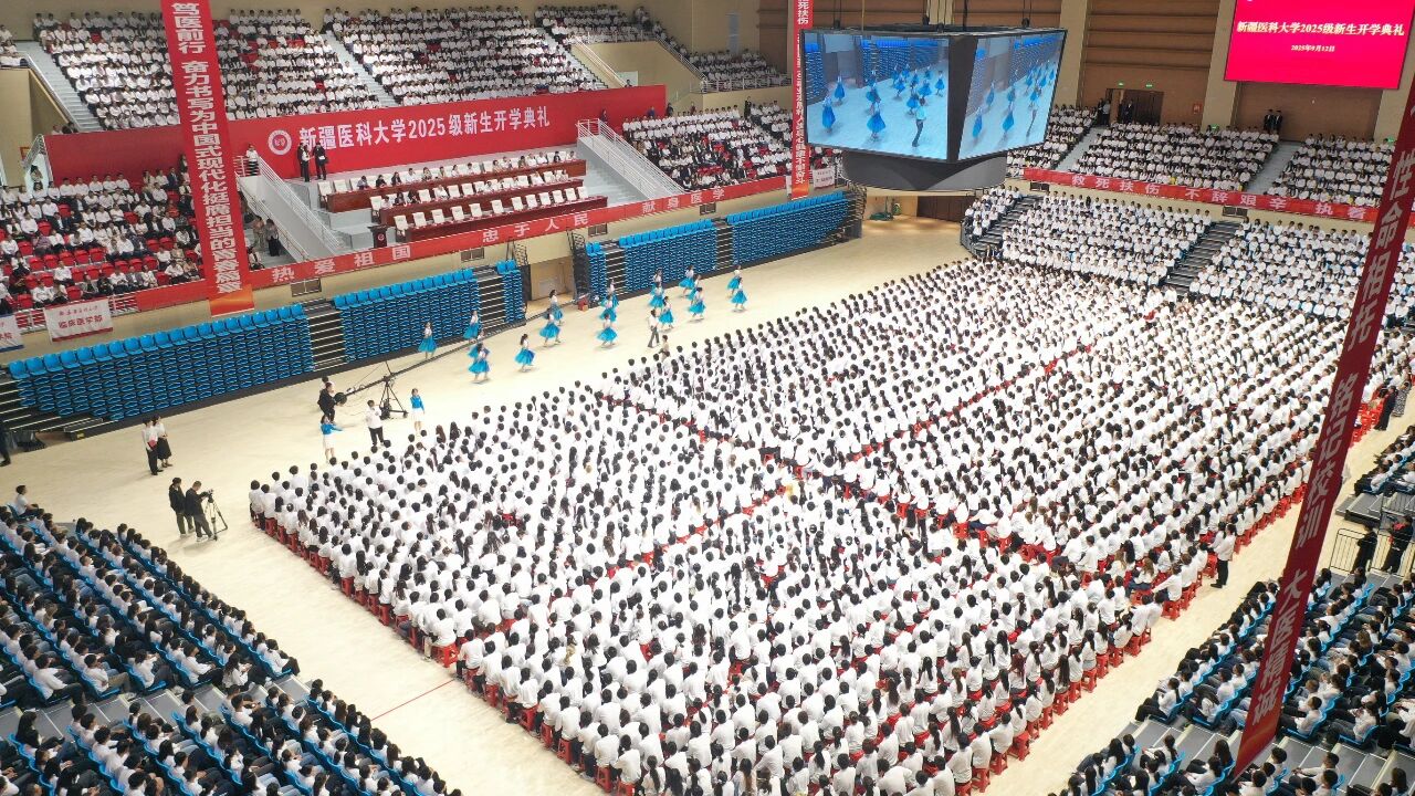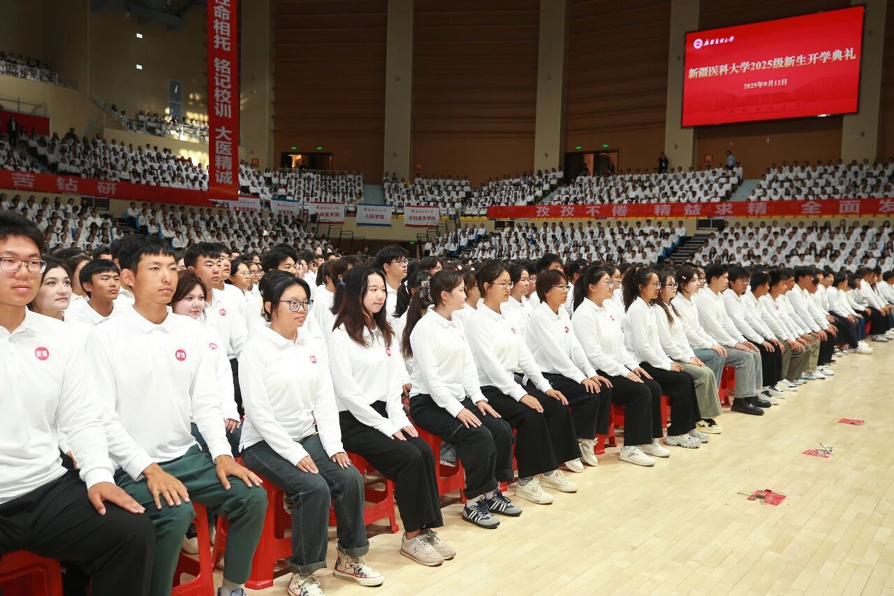 在这满载收获与希望的金秋时节,我们又迎来了一群怀揣“医学梦”的追光者。9月12日上午,新疆医科大学2025级新生开学典礼在雪莲山校区体育馆举行,来自全国30个省(区、市)的4716名本专科新生和2157名研究生新生一起迎来了人生的新起点,正式开启立志从医、学习本领、为人民健康服务的新征程。
