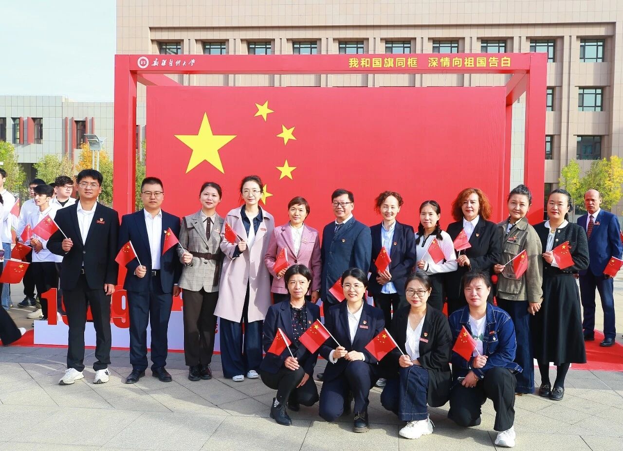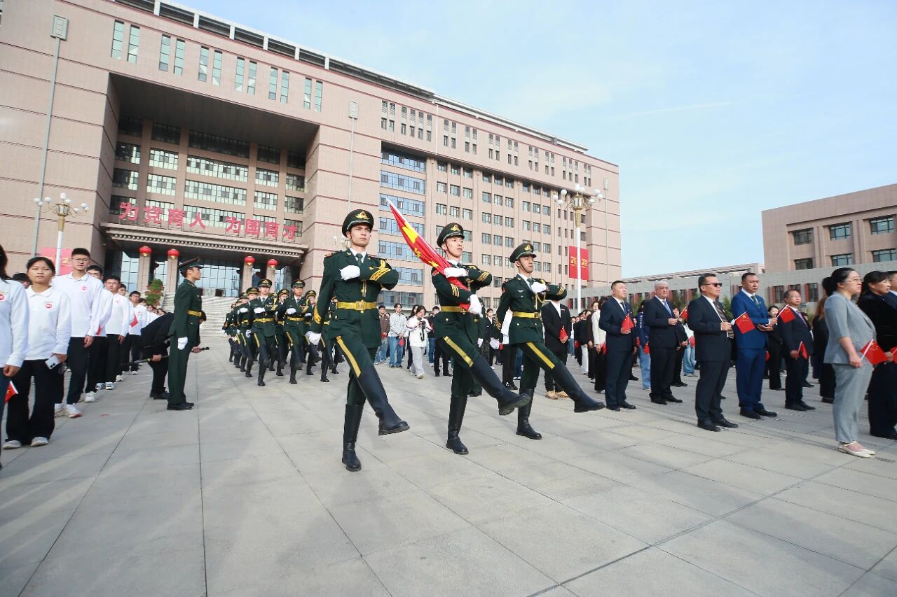 “五星红旗迎风飘扬,胜利歌声多么响亮……” 仪式最后,全场师生挥动着手中的国旗,齐声高唱《歌唱祖国》。这歌声,是祝福,是誓言,是凝心聚力的号角,更是奔赴未来的序曲。歌声汇聚成一片赤诚热烈的海洋,涌动着对祖国繁荣昌盛、国泰民安的最美好祝愿。