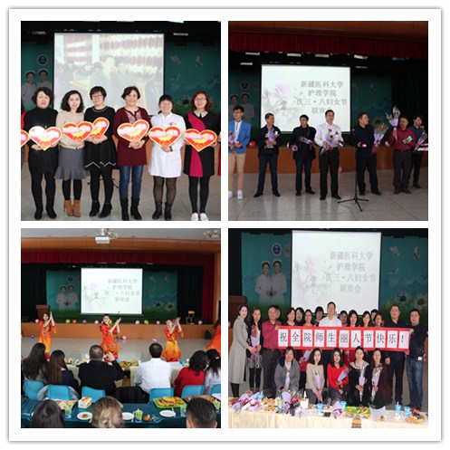 护理学院女职工占到全院教职工比例的90%,在工会的积极组织和带领下,我院积极筹备,全体教职员工齐聚一堂。活动开始首先由新疆医科大学护理学院党委书记叶新怀为教职员工“民族团结一家亲”结对子启动仪式暨庆三·八活动致辞,高度赞扬了我院全体女教职员工巾帼不让须眉的敬业精神,并为全体女教职员工送上亲切慰问和祝福,紧接着宣读了“民族团结一家亲”教职工结对子名单并进行了第十六个“公民道德月”动员大会。随后本次庆三·八活动正式开始,火热的舞蹈,精彩的小品,动听的歌声,惊艳的走秀带动起全场气氛。在送祝福环节,全体男教职工为女教职工送上鲜艳的康乃馨及小礼物表示节日的祝福,一朵朵美丽的鲜花映照着老师们甜蜜的笑容,幸福溢于言表,整个会场顿时沉浸在温馨欢乐的氛围中,活动最后进行了抢板凳趣味活动,大家积极参与其中,现场气氛热烈,把整个活动推向高潮,最后本次活动在一片欢声笑语中圆满结束。