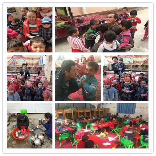 因为心里一直装着孩子,课余时间,老师们还竭尽所能为孩子们筹集玩具、文具、教具,以丰富孩子们的幼儿园生活,在扎瓦支教的3个月里,各位老师通过单位、亲朋好友以及社会爱心人士捐赠的物品不下万件。2017年托格拉克麻扎村新疆医科大学“访惠聚”工作组的孟军老师也加入到捐赠行列,在看到可爱的孩子,得知幼儿园硬件条件差的情况后,他立即动员自己的朋友为孩子们寄来了温暖的玩具、图书等,还每天在工作之余来到幼儿园看望孩子,孩子们都亲切的叫他“孟军达达”。
