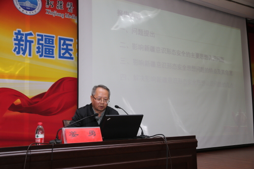 揭牌仪式结束之后,新疆大学姜勇副研究员做了题为“解决新疆意识形态领域问题是实现社会稳定长治久安的思想基础”的精彩报告。