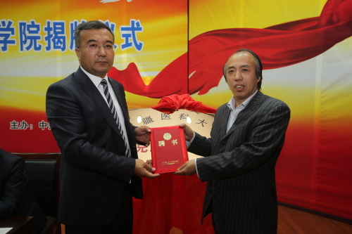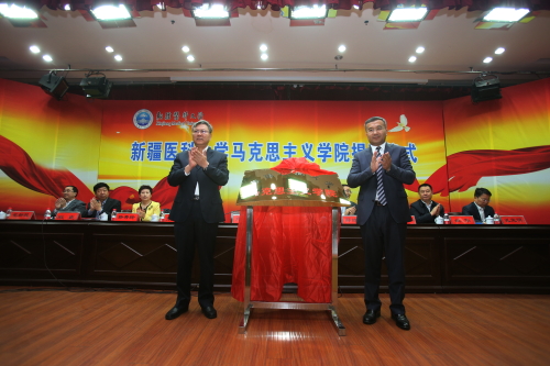 高发水书记与校长凯赛尔·阿不都克热木一同为新疆医科大学马克思主义学院揭牌。