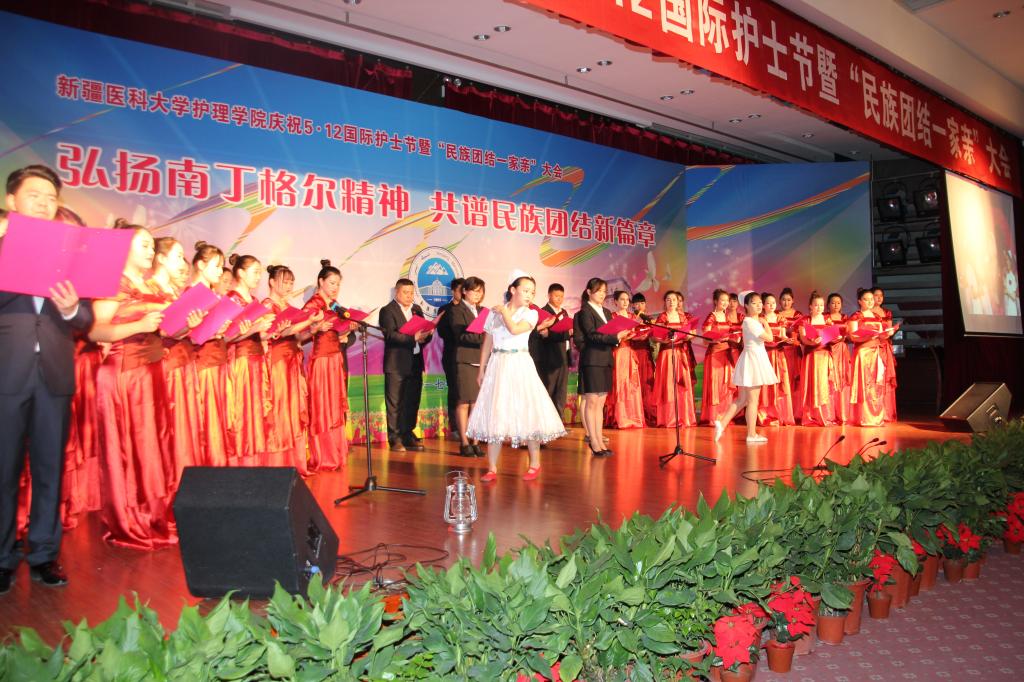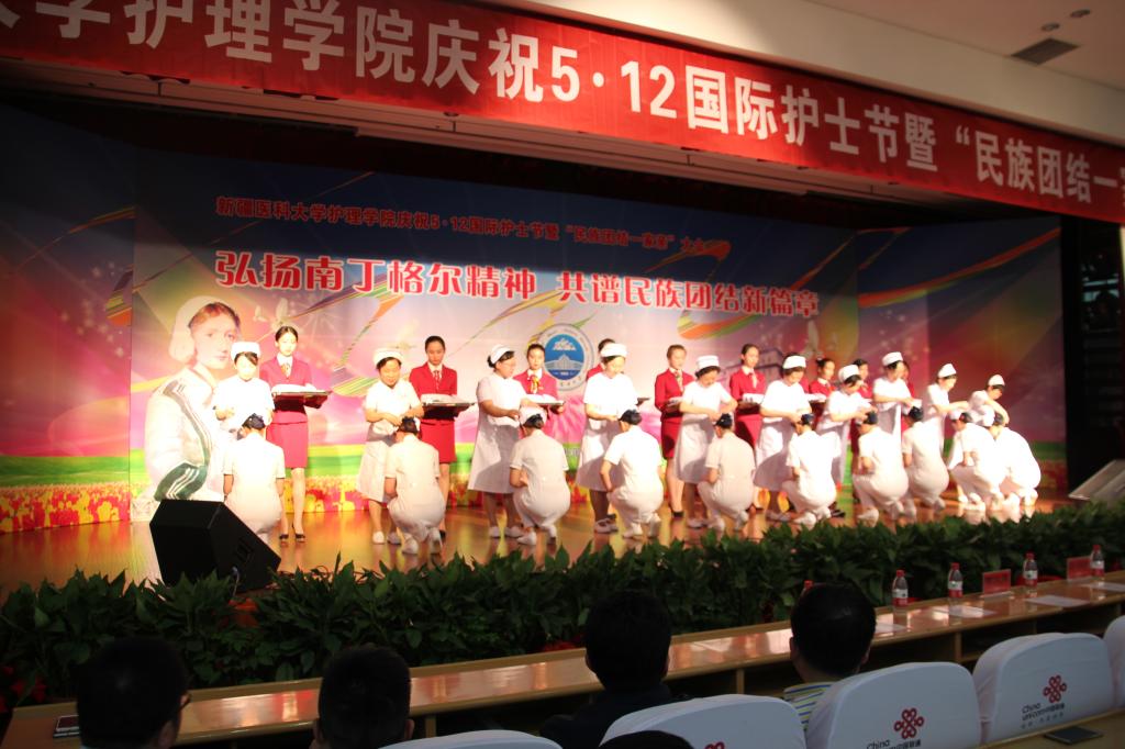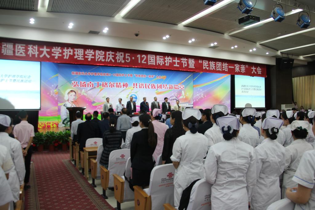 校党委书记高发水在致辞中勉励师生们,要热爱护理事业,弘扬南丁格尔精神,把南丁格尔精神贯彻护理教学、研究和临床一线。要发展壮大新疆医科大学的护理事业,塑造学科精品。新疆医科大学是新疆医疗卫生事业发展的中坚力量,新一代的新医人要紧紧围绕新疆工作总目标,凸显具有新疆特色的护理教育工作,赋予民族团结进步全新的含义。通过护理人的耐心、爱心、细心和责任心,厚植情感基础,让各族群众真正亲如一家,让各族患者感受到中华民族大家庭的温暖,感受到党和政府的关怀,用我们对党的忠诚和对事业的热爱铸就民族团结的深情,为新疆社会稳定和长治久安总目标的实现做出积极贡献。