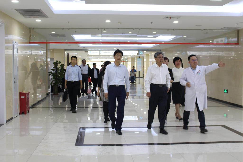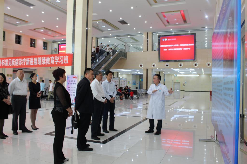 5月13日上午,新疆医科大学党委书记高发水、党委委员、一附院党委书记姚华、教育厅巡视员张向阳等一行7人前往一附院昌吉分院,重点调研医联体合作模式和医院发展运行情况。昌吉州党委常委、市委书记孟凡刚、市委副书记、市长郑敏、市委常委、宣传部部长王艳华以及昌吉分院全体院领导陪同调研。