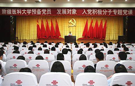 6月15日晚,新疆医科大学临床教学楼八百人会议室座无虚席,校党委书记高发水为学校教职工和学生预备党员、发展对象、入党积极分子上了一堂精彩的党课。