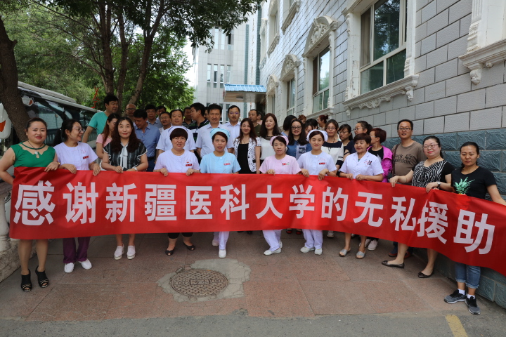 我校第二批医疗队一行于在6月15日来到塔城地区人民医院,受到当地政府和医院领导的热烈欢迎,塔城地区政府对我校医疗队的服务工作给予了高度评价和充分肯定。第一批帮扶医疗队圆满完成了帮扶期间的各项医疗工作,在技术指导、学术讲座、临床带教、会诊等方面做了大量工作,与当地各族人民群众建立了深厚的友谊。对第一批帮扶医疗队专家们的辛勤工作,无私奉献,为提升塔城地区人民医院医疗水平和为塔城医疗事业作出的贡献表示衷心感谢。同时,热烈欢迎第二批帮扶医疗队的到来,希望医疗队专家对塔城地区医学人才的传帮带方面发挥更大的作用,继续提升塔城地区医疗水平,造福塔城人民!