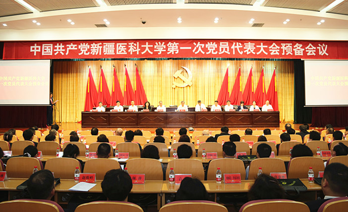 6月27日下午,新疆医科大学第一次党员代表大会预备会议在临床教学楼八百人会议室召开。自治区高校党代会指导工作组、自治区党委组织部部务委员、办公室主任李江等一行4人到会指导监督工作。校党委书记高发水同志主持会议。