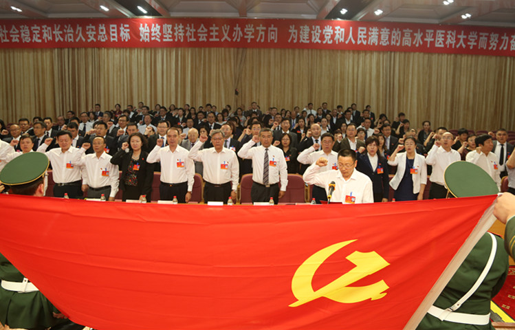 薛继海同志向全体代表报告中国共产党新疆医科大学第一次党员代表大会筹备工作情况。新疆医科大学党委对第一次党代会筹备工作高度重视,成立了中国共产党新疆医科大学第一次党员代表大会筹备工作领导小组,设置大会筹备工作机构,明确职责任务,制定相关方案,认真开展工作。经过半年多的精心准备、扎实工作,学校党代会各项筹备工作已经基本就绪。党代会筹备工作领导小组在校党委的领导下先后确定了大会的指导思想和主要议程,按照规定和程序,选举产生了第一次党代会代表,组织酝酿、推荐、考察了“两委”委员候选人预备人选。领导小组还精心准备了“两委”的工作报告,并在全校范围内营造了以实际行动迎接党代会召开的良好氛围。“两委”报告起草工作从2016年11月底启动。党委工作报告的撰写先后进行了3次大规模的征求意见,组织了4场不同层面的征求意见座谈会, 6次提交学校党委会议、常委会议研究审议,历经31稿,最终形成。全校从28个选举单位选出的147名正式代表,均符合代表条件和有关规定,代表资格有效。