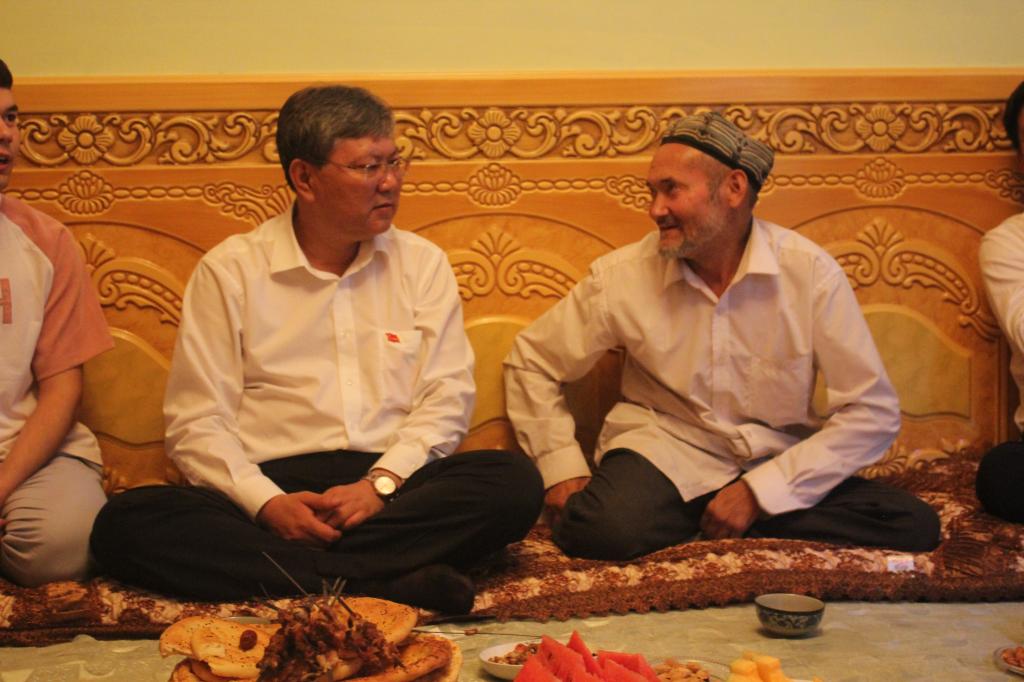 2017年7月7日中午,我校2016级中西医结合学生阿卜杜外力·吾布力喀斯木的家中传来阵阵笑声,在瓜果飘香的庭院里,正在墨玉县调研访惠聚工作、看望工作组的高发水书记一行正在进行家访。