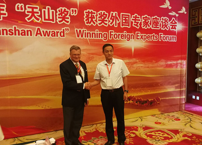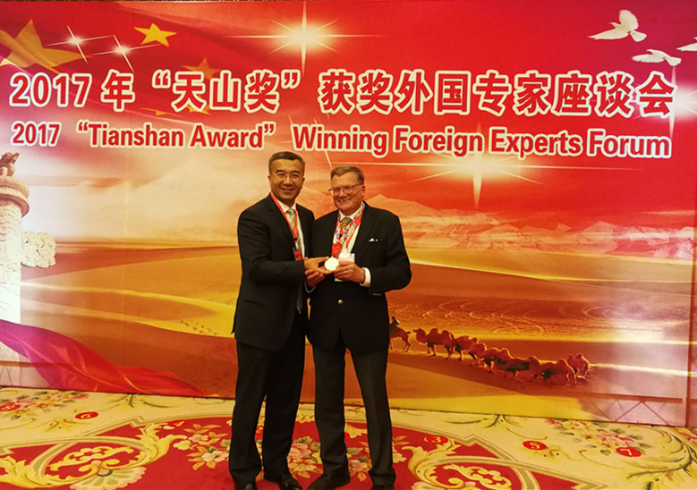 自治区政府外国专家“天山奖”是为表彰为新疆经济社会发展做出贡献的外国专家的最高荣誉,每年评审一次,并由自治区人民政府颁发奖章及证书,今年共有八位专家获奖。此次鲁尼•安德森教授获此殊荣,是对他多年来在人才培养和交流合作方面所做工作的肯定。