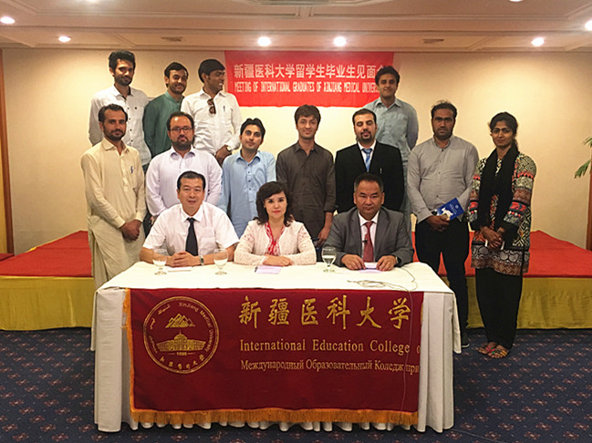 2017年8月22日至25日,新疆医科大学外事处副处长阿孜古丽•吐尔逊、国际教育学院雅森•米吉提、杨建一行三人,受校领导委托,赴巴基斯坦医学口腔委员会(PM&DC)、航空大学法扎伊医学院(FAZAIA MEDICAL COLLEGE,AIR UNIVERSITY)、巴基斯坦医学联盟中心(CPSP)开展交流合作,召开留学生毕业生见面会,并部署2017年留学生招生工作。