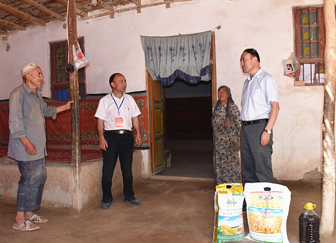 一年一度的古尔邦节就要来临,为做好“古尔邦节”前慰问工作,8月30日,新疆医科大学“访惠聚”驻英吾斯塘村工作队和村“两委”成员,深入村民家中为村里的四老人员、五保户、宗教人士、困难家庭、民兵送去价值8000余元的大米、面粉清油等慰问品,送上节日的祝福和问候,同时也送去了党的温暖。