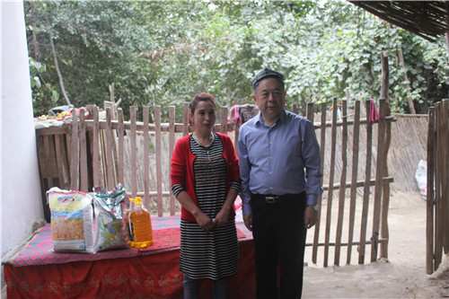 姚校长详细询问了家里的情况以及有什么困难需要帮助。阿米乃·阿卜杜拉说,自己是个单亲妈妈,丈夫因心脏病过世,她独自担当起家庭的重担,供三个孩子上学。今年因核桃树嫁接,收入不如去年,但是在新疆医科大学“访惠聚”驻村工作队的积极联系与帮扶下,她去224团等地打工增加收入。阿米乃·阿卜杜拉说:“现在党的各项政策太好了,驻村工作队也很给力。村委会有了文化宣传广场;村里的富民安居房今年就会实现全覆盖;村里也有了全民健身器,闲暇之余村民们能够锻炼身体;村里的垃圾站建设,使附近几个村的村容村貌发生了很大的变化。”姚校长说:“看到你通过自身的努力,在党的惠民政策指引下,生活过得越来越好,为你感到高兴。希望你能带动身边的兄弟姐妹努力脱贫,过上好日子。咱们今天成为亲戚了,你有什么困难,随时可以找我啊。”阿米乃高兴地合不拢嘴。