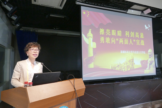 欧阳静教授从要在思想认识上走前列,对党忠诚不做“两面人”、擦亮眼睛识别“两面人”、利剑高悬清除“两面人”三个方面详细讲解了何为“两面人”,如何识别、辨清“两面人”。欧阳静教授还重点讲解了“两面人”在新疆的具体表现、五副“脸谱”、三个特点以及“两面人”的形成原因、危害。讲座内容丰富,通过生动的漫画、真实的案例让每一位聆听者深刻认清了“两面人”的本质。