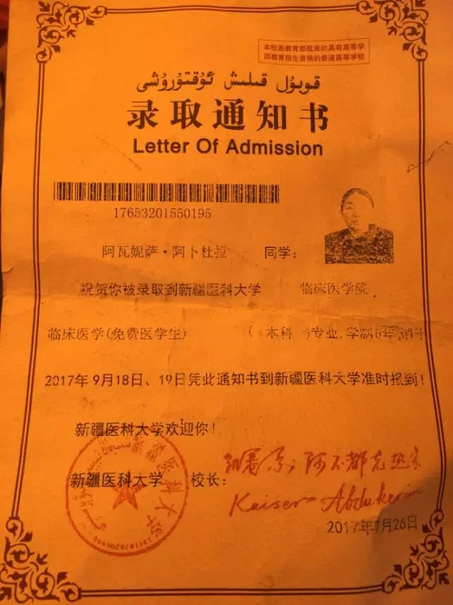新的人生、新的希望。阿瓦尼沙梦想的航程将在新疆医科大学开启。