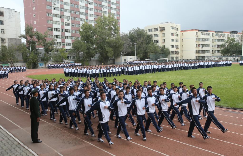 随后,分列式开始,24个军训方阵以嘹亮的口号、昂扬的精神、青春的风采、整齐的队列,依次从主席台前经过。主席台上领导全部起立,为受阅方阵鼓掌敬礼。军训汇报表演中军体拳、停止间转发、三大步伐等项目相继精彩上演,他们挺拔的军姿、饱满的精神、坚强的斗志、矫健的动作赢得了现场阵阵喝彩和掌声。