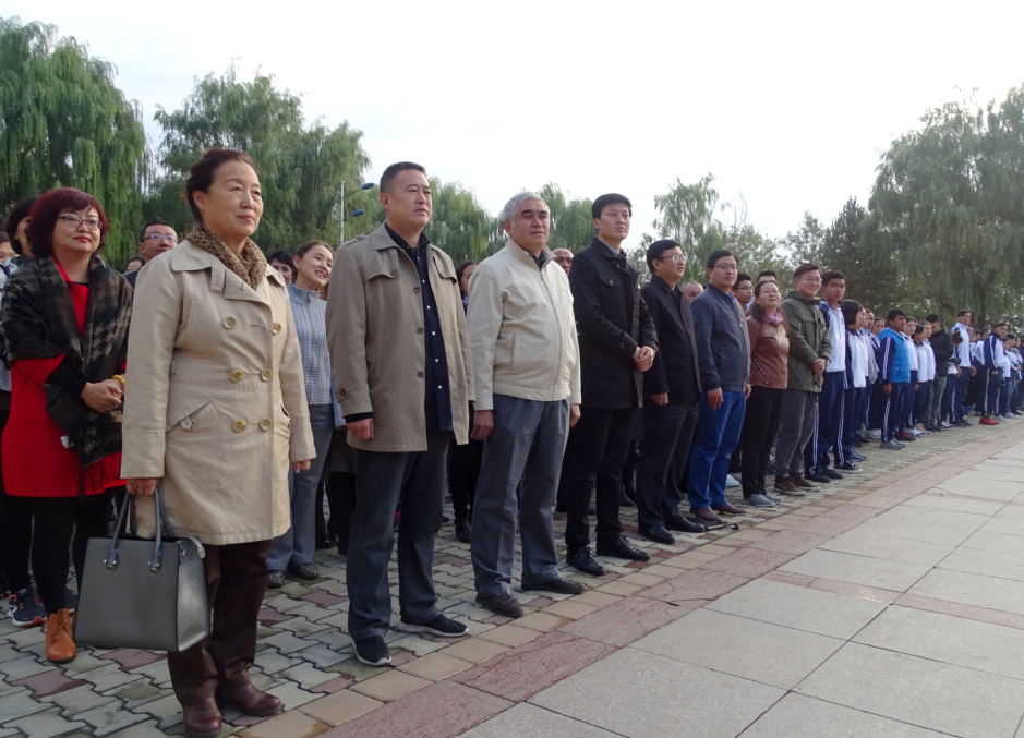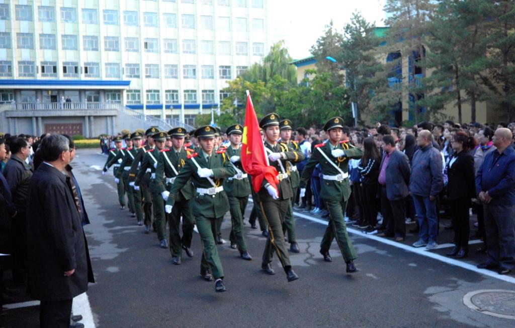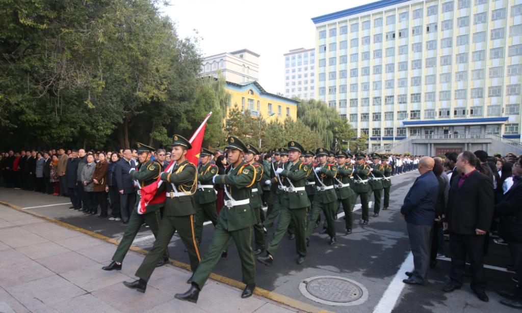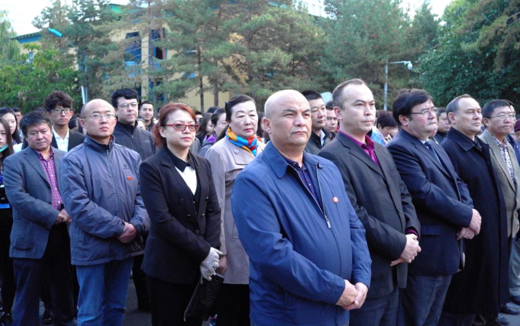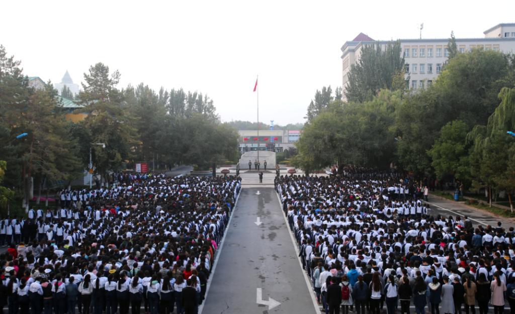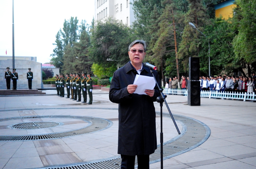 九时整,新疆医科大学北校区维吾尔医学院、中医学院、公共卫生学院和医学工程技术学院的全体师生,也举行了庄严的升国旗仪式。校党委常委、副校长贾文霄发表了国旗下的讲话。