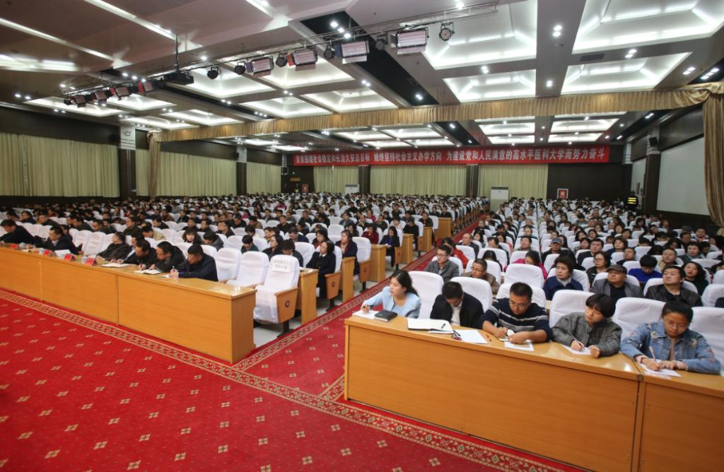 全体校领导、副处以上干部,校本部副高以上职称教师、各附院正高以上医护人员、马克思主义学院全体教师,机关副科以上干部,全体辅导员、班主任参加了会议。(辛萍审 余淼摄影、编发)