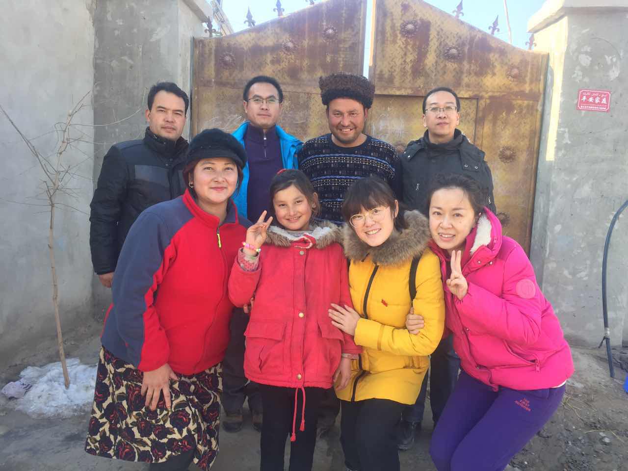 迎着明媚的阳光,新疆医科大学的结亲干部语言文化学院阿里木江、体育部祝丰、计财处李玲、教务处张文红和魏东,来到祝丰老师的亲戚艾则孜·阿不都热西提的家。刚走到大门口,迎面碰到艾则孜急匆匆地要出门,看到我们来了。他立刻把大家请进屋里,面露歉意地对我们说:“你们先在家里稍坐一会儿,喝些热茶。我现在要去给地里的冬麦浇些水,去去就回!”说着,就要往外走。一听这话,结亲干部们立即把行李一放,拉着艾则孜的说:“我们大家一起去吧,人多力量大,一会儿就能浇完了!”。说着,结亲干部们不顾亲戚的反对,执意拉着艾则孜往他的地里走去。