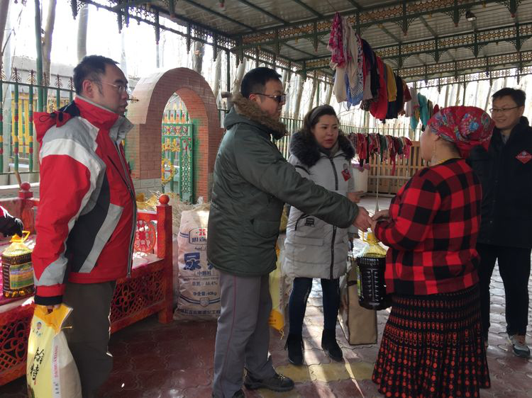 12月26日上午,新疆医科大学第六附属医院“结亲周”活动第五批队员在领队吴国荣的带领下,共捐款3600元为和田墨玉县扎瓦镇胡木旦村九户贫困户送去大米、清油、药物等慰问品,并开展结亲走访工作,把结亲干部的温暖和关怀送到亲戚们的心坎上。