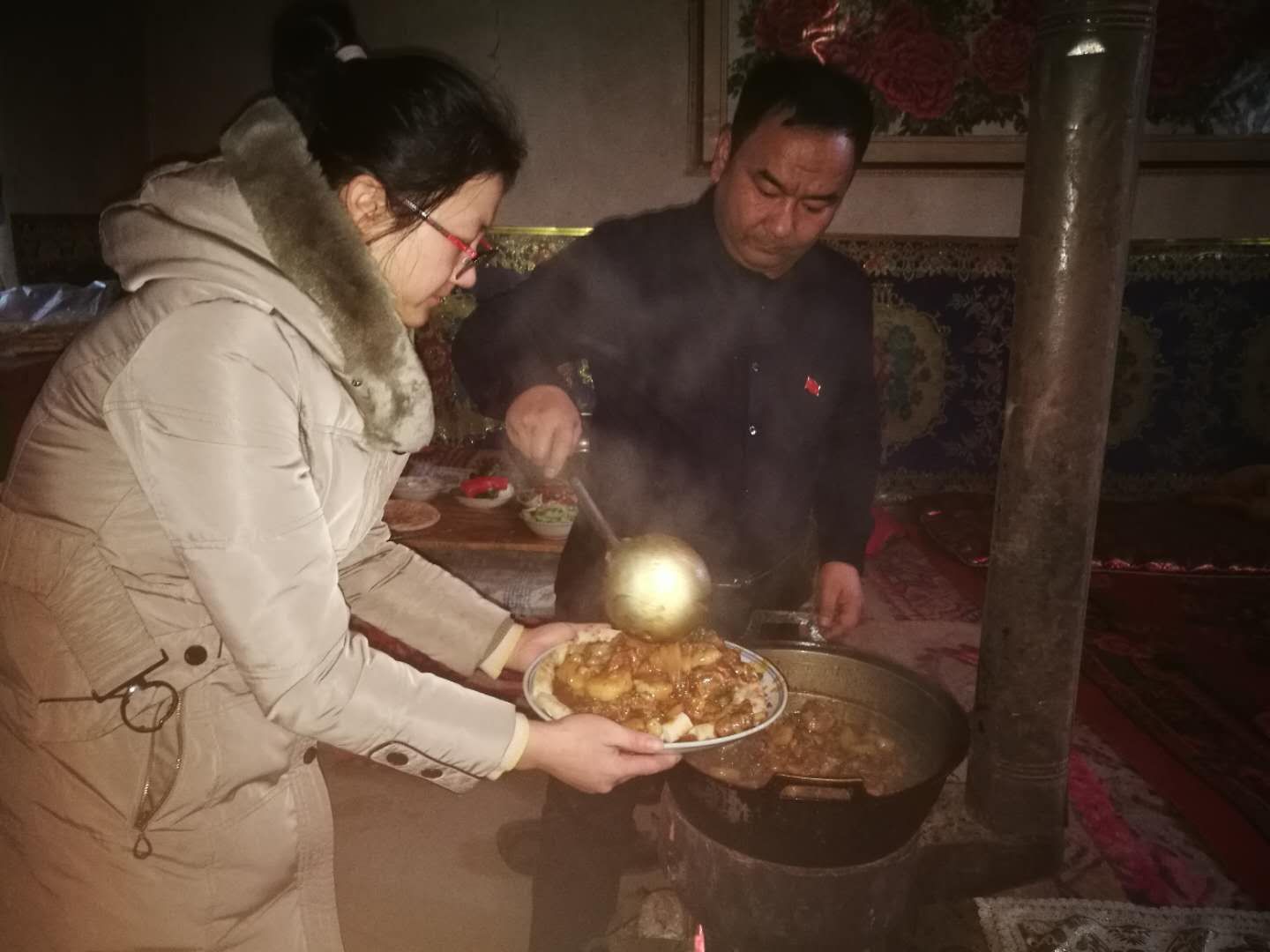 为老人做了一顿团圆饺子后,结亲干部在小组帕丽达的翻译下向老两口宣传了十九大报告中三农方面的内容。乃比•居麦不住向大家表达着他对党和政府的感谢:“政府给我补贴了5000元,让我买了六只羊,到2020年,我们要同全国一道奔小康。”