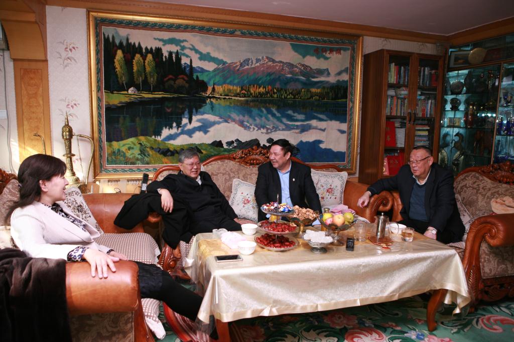 在帕尔哈提•阿不都克热木教授的家,老同志热情地招呼大家,他说: “高书记在春节来临之际到家里看望我们,是对少数民族教职工的关心关怀,我特别荣幸、特别高兴。”帕尔哈提•阿不都克热木教授说,自己在学校学习工作生活了46年,对学校有着深厚的感情,希望能继续发挥余热,为学校的教育、教学事业贡献自己的微薄之力。帕尔哈提教授还对学校的发展提出了自己的意见和建议。高发水书记对老同志关心学校建设的热忱之心表示感谢,并将老干部的意见、建议一一记录,表示下一步,校党委将认真听取和研究老同志们的想法和意见,汇聚全体师生员工的力量,共同推动学校各项事业迈上新台阶。