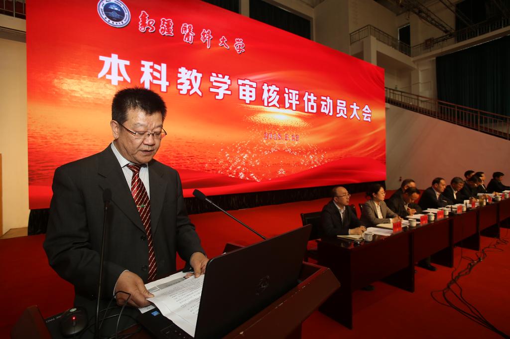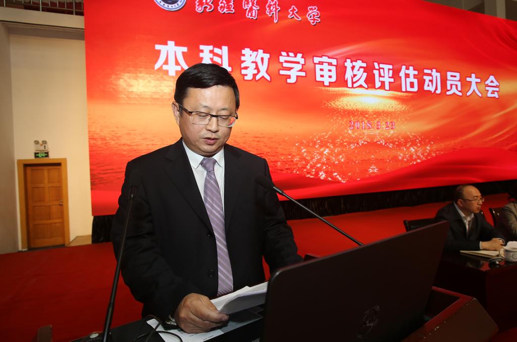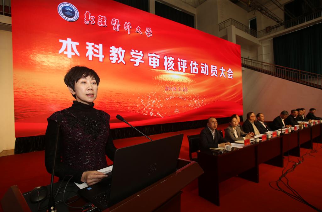 会上,校党委常委、副校长贾文霄首先宣读了《新疆医科大学开展本科教学审核评估评建工作方案》。公共卫生学院党委书记肖辉、第一临床学院院长木胡牙提•乌拉斯汉、中医学院中医系主任张星平、基础医学院副院长关亚群、药学院2015级2班学生刘梦思作为教职工和学生代表上台发言。姚文兵副校长对审核评估指标体系进行了解读。