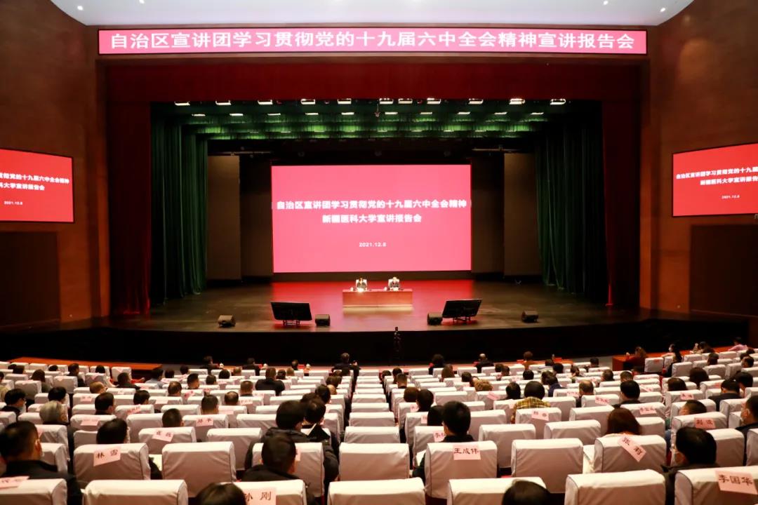 12月8日下午,自治区学习贯彻党的十九届六中全会精神宣讲团在我校进行宣讲。自治区宣讲团成员,新疆财经大学党委副书记贺萍教授面向新医大3000多名教职工及医务工作者代表作了党的十九届六中全会精神宣讲报告。校党委书记高发水主持报告会。