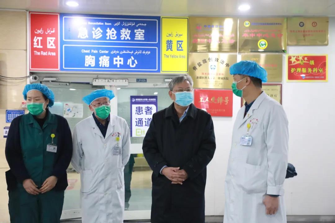 校党委副书记、校长凯赛尔·阿不都克热木来到第二附属医院和附属肿瘤医院门急诊,看望慰问一线医护人员,向大家致以虎年的新春祝愿。
