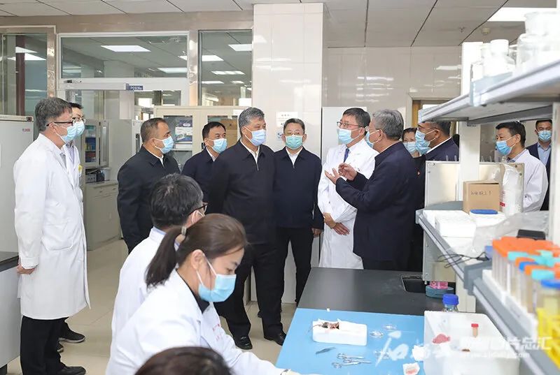 4月15日,自治区党委书记马兴瑞在新疆医科大学第一附属医院,与科研人员交谈了解科研成果转化和临床应用等情况。石榴云/新疆日报记者 崔志坚摄