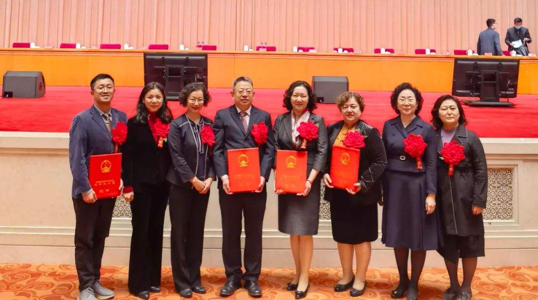 我校获得自治区科技进步奖一等奖的安冬青教授、陆晨教授和古扎丽努尔·阿不力孜教授与我校部分获奖人员合影