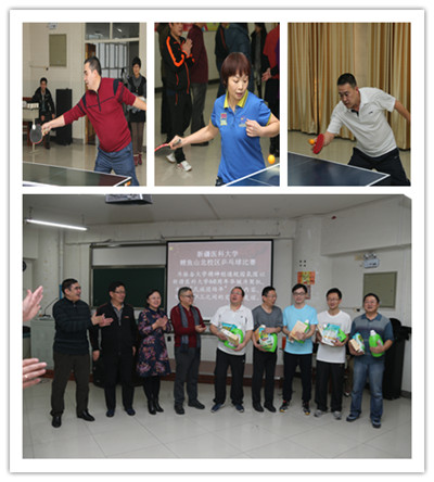 鲤鱼山北校区各学院工会以新疆医科大学60周年华诞为契机,创造丰富多彩校园文化氛围,联合在北校区教职工中开展乒乓球比赛活动。此次活动由新疆医科大学语言文化学院工会承办,语言文化学院崔巍院长任总裁判长,隋永斌任赛会执行人。比赛组委会组长安冬青副校长对此次活动给予了充分地肯定。