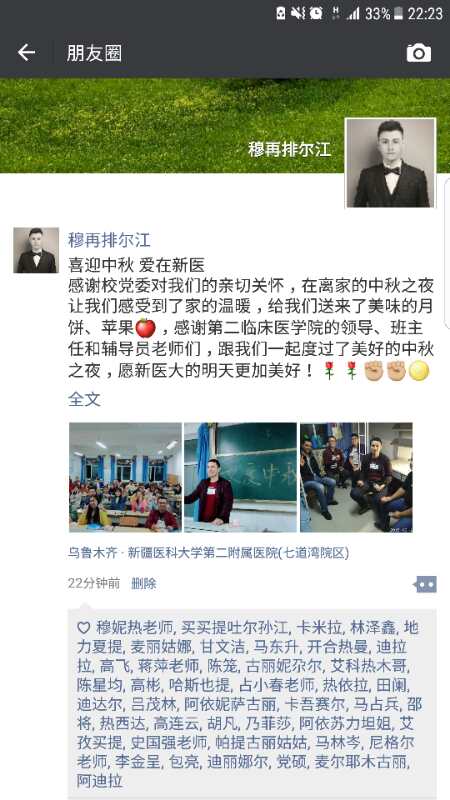 金秋送爽,丹桂飘香,又迎来了一年一度的中华民族传统节日---中秋节。为进一步弘扬中华文化,加强中华传统文化教育,同时让远离父母的同学们度过一个温馨、温暖、快乐的中秋节,新疆医科大学各学院、各班级精心筹备了形式多样、寓教于乐的庆中秋主题班会活动。