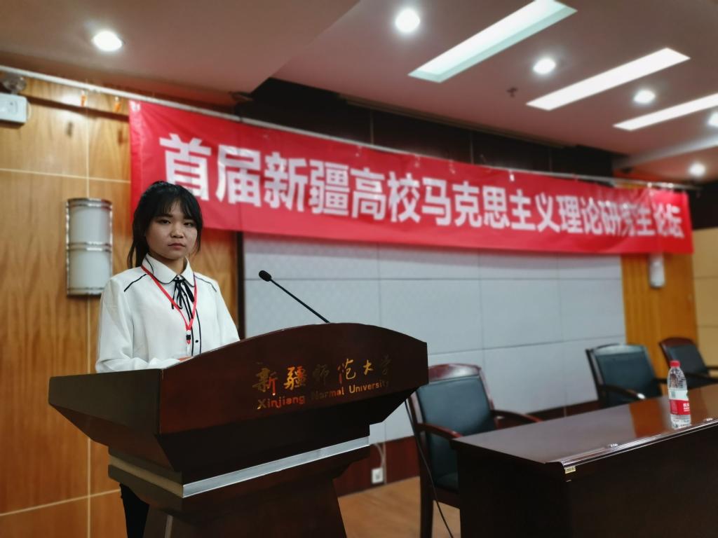 本次论坛旨在进一步提高新疆高校马克思主义理论学科研究生培养质量,提升研究生科研能力和学术水平,促进新疆各高校之间的学术交流及发展。2018级研究生赵旭红在论坛上做了精彩发言。她说,“论坛让大家进一步了解了本领域的学术前沿。今后我会敦促自己更加努力,向优秀的前辈和同龄人学习。”2018级梁攀说,本次论坛通过学术成果展示、专家学者授课的方式,营造出了一种自由务实的学术气氛,有利于激发我们进一步提高独立开展科学研究的能力。作为思想政治教育专业的硕士研究生,能在家门口和全国多所高校的同学一起学习交流,是非常难得的机会。