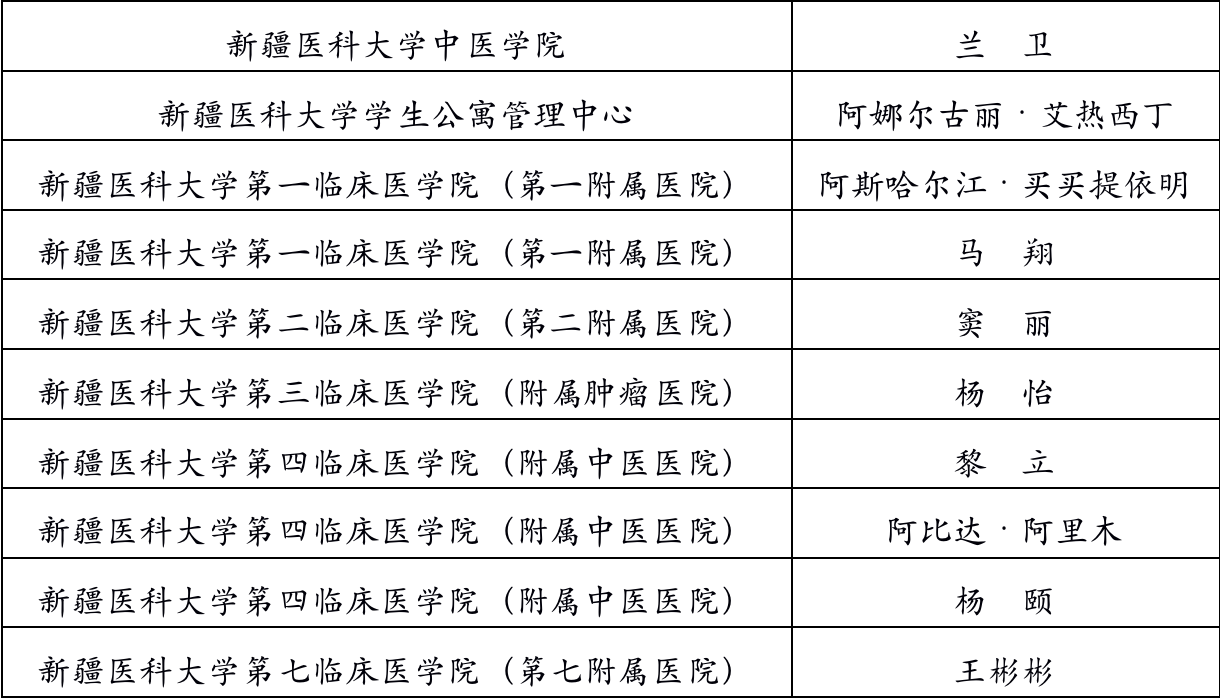 新疆医科大学10名教职工荣获自治区“民族团结一家亲”和民族团结联谊活动先进个人荣誉称号