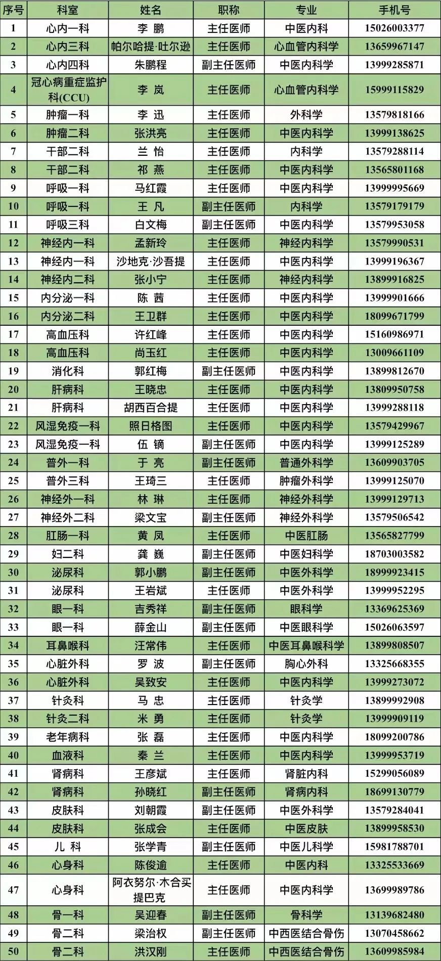 为贯彻落实自治区党委、自治区人民政府关于全方位做好群众涉疫就诊困难诉求工作的部署要求,充分发挥中医药在治疗上“简便验廉”的特色和基础病用药指导,确保群众利用电话联系和咨询及时、有效、快速解决群众急难愁盼的就医问题,新疆医科大学附属中医医院(自治区中医医院)向社会公开各专业的五十名医疗专家联系电话。