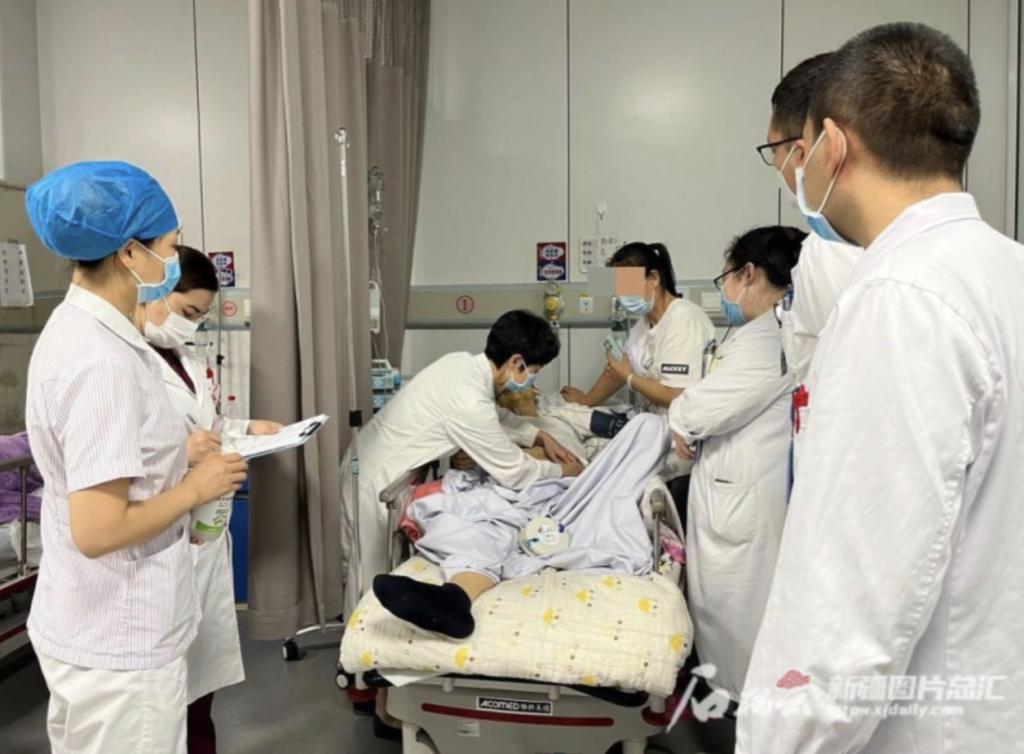 11月28日11时许,新疆医科大学附属肿瘤医院(自治区肿瘤医院)急诊科,医生孙雯剑挽起患者的裤腿,看到小腿和脚背皮肤上的紫色淤点,他的表情凝重起来。通过初步检查和详细询问病史,他立即安排患者做进一步检查和治疗,并快速对接联系,做好紧急输血的准备。