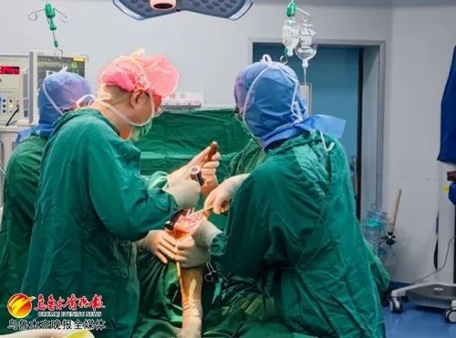 新疆医科大学第一附属医院关节外科团队正在为患者古丽·买买提(化名)实施II期关节翻修手术