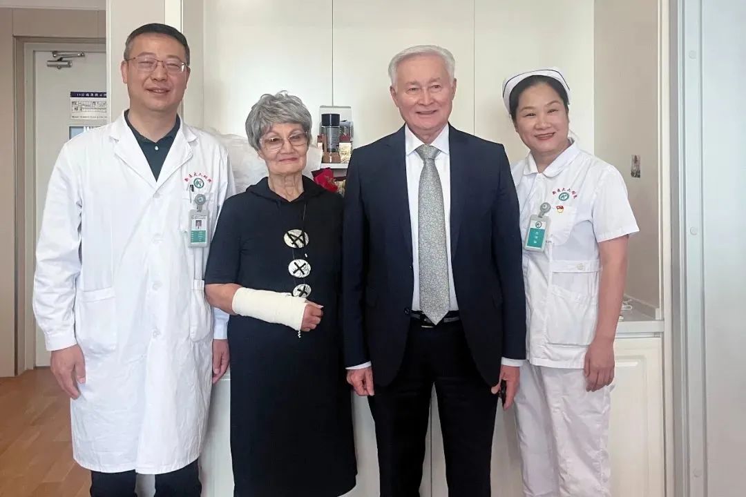 “这里的医护人员技术很好,服务很周到,早晚都会过来查房,看我的恢复情况,为我提供康复治疗,现在我的手指和手腕都可以正常活动了,为此我很感激,也很满意!”在新疆医科大学第六附属医院关节外科,来自哈萨克斯坦国立医学科学中心的儿科专家拜根金娜·法尼亚激动地说道。她的丈夫,同样也是哈萨克斯坦国立医学中心院长的拜根金·阿拜,频频竖起大拇指,为医院医护人员的精湛医术点赞。
