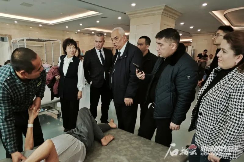 11月15日,在新疆医科大学第四附属医院(自治区中医医院),中亚国家医学高校教师了解该院针灸科发展。石榴云/新疆日报记者 苏璐萍摄