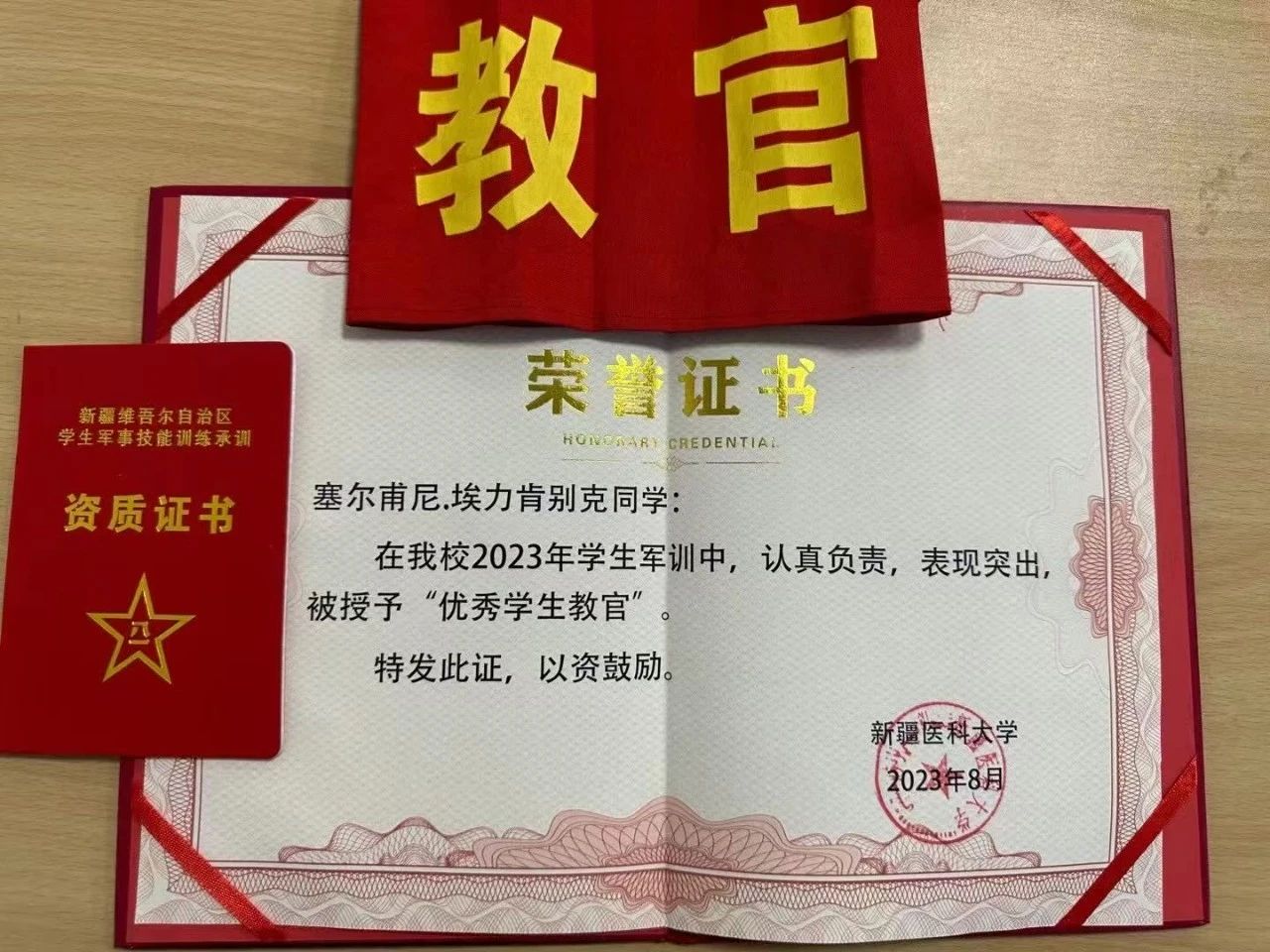 2021年,正在新疆医科大学就读的塞尔甫尼・埃力肯别克选择了应征入伍,当了一名光荣的人民子弟兵,锻炼自己的钢铁意志。他说,从白大褂到迷彩服的转变,是履行“健康所系,性命相托”到“若有战,召必回”的承诺。