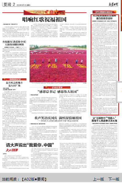 在新中国69岁生日的喜庆日子里,回望来路,每一个中国人都为新中国69载的光辉岁月而感到骄傲。身处边疆,我们深感新疆的繁荣发展离不开党中央和一代代领导集体的关心和厚爱。怀着感恩之情回眸自己的成长,重温习近平总书记关于爱国主义的重要论述,想到自己最近在日内瓦的亲身经历,我不禁心潮澎湃。