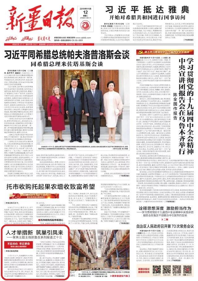 11月12日出版的《新疆日报》头版报道了新疆医科大学在开展主题教育中的典型做法和经验: