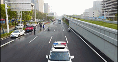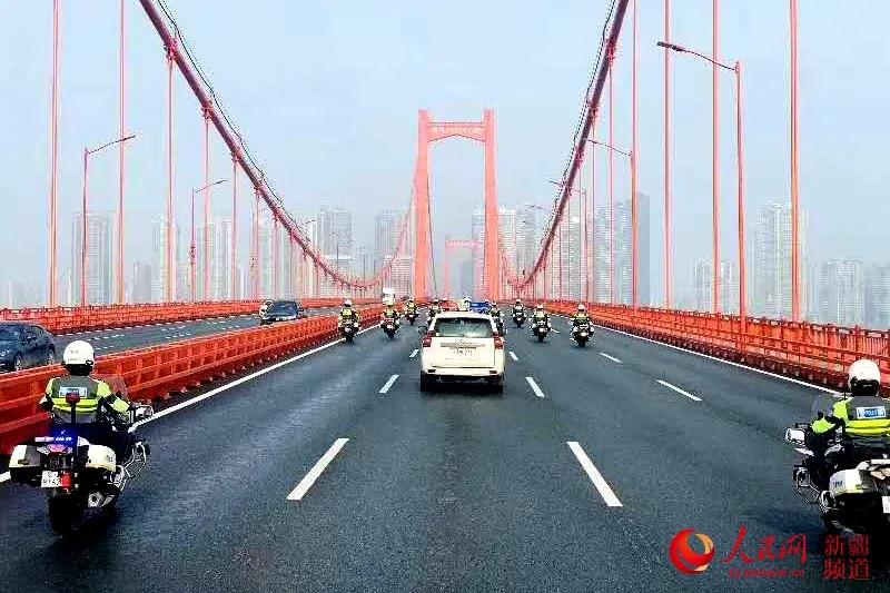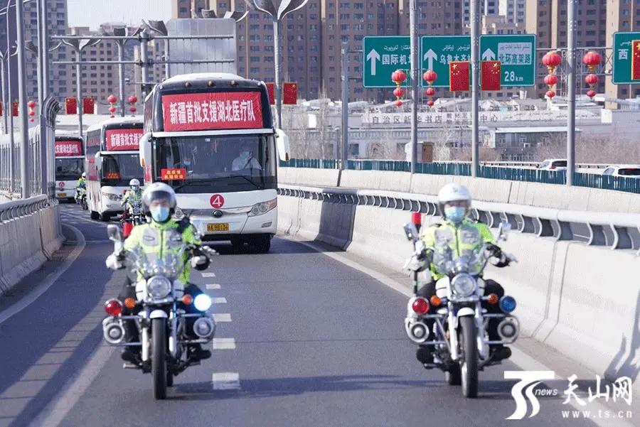 武汉当地警车护送新疆第一批支援湖北医疗队前往机场