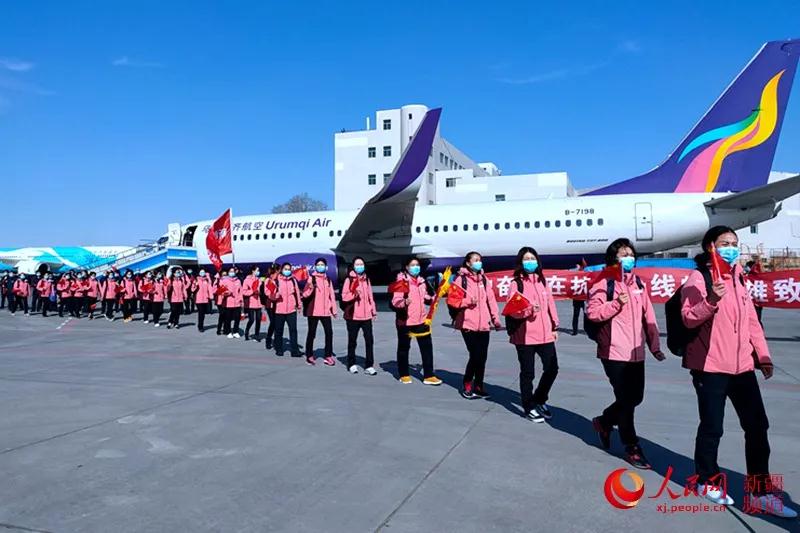 3月26日,新疆首批支援湖北医疗队的142名队员圆满完成战“疫”任务,乘坐包机回到家乡。