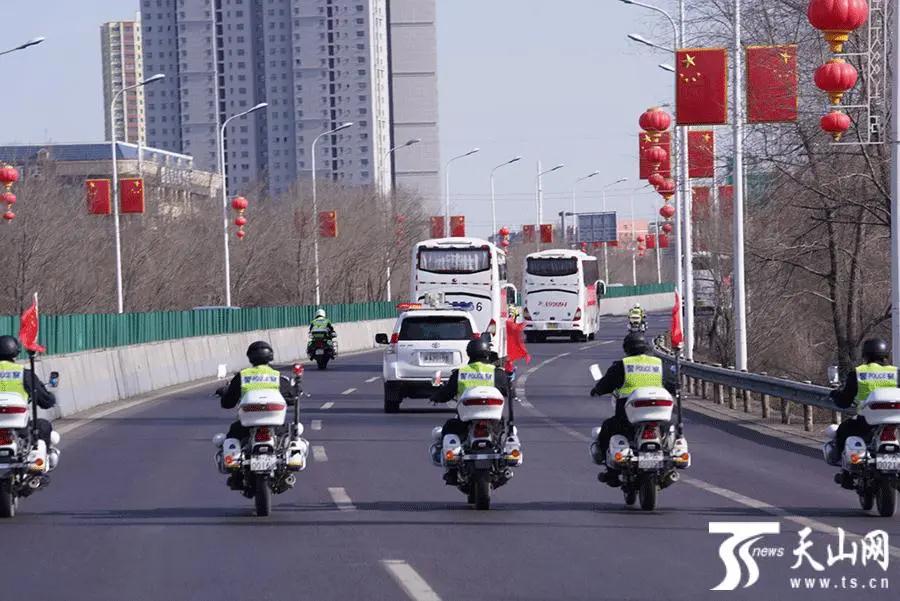 为迎接英雄回家,乌市公安局交警支队派出车队全程护送医疗队前往休养驻地。机场高速上每隔200米左右就有一位警务人员向车队敬礼致敬,路遇的市民纷纷掏出手机拍摄见证英雄归来的一幕。