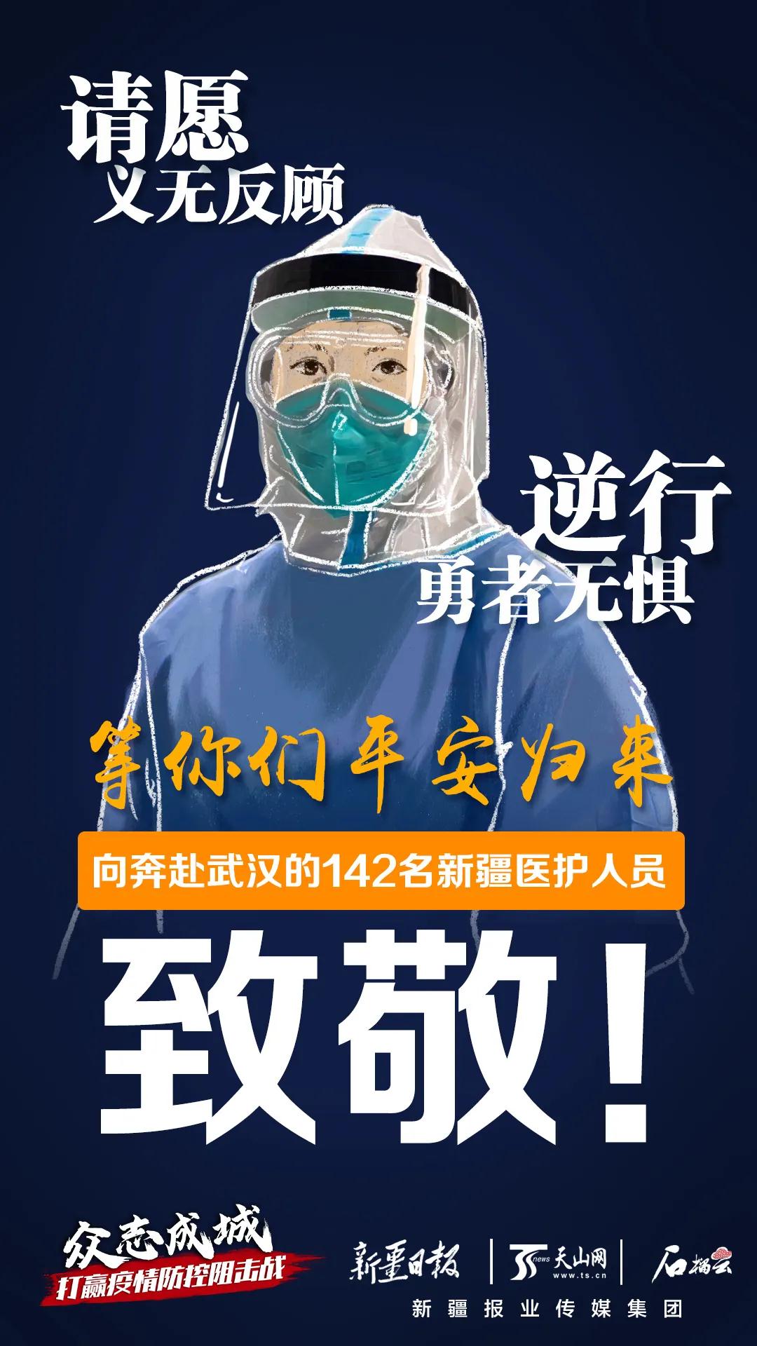 据悉,新疆首批支援湖北医疗队的142名队员来自新疆医科大学六所附属医院,持续奋战59个日日夜夜,圆满完成在武汉大学人民医院东院承担危重症患者的医疗救治任务,不辱使命、平安凯旋。