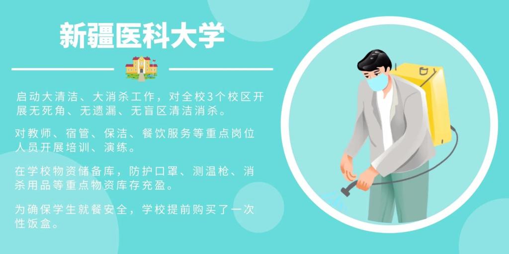 “我们成立了12个工作组,精准精细抓好疫情防控、学生返校、教学运行、后勤保障、应急处置等工作,确保学生开学安全平稳有序。”新疆医科大学党委副书记、校长凯赛尔·阿不都克热木说。