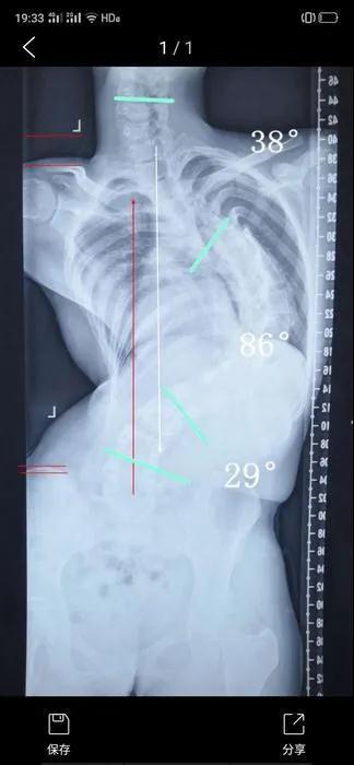 4月30日,来到了新疆医科大学第六附属医院。检查被确诊为“青少年特发性重度脊柱侧弯”。