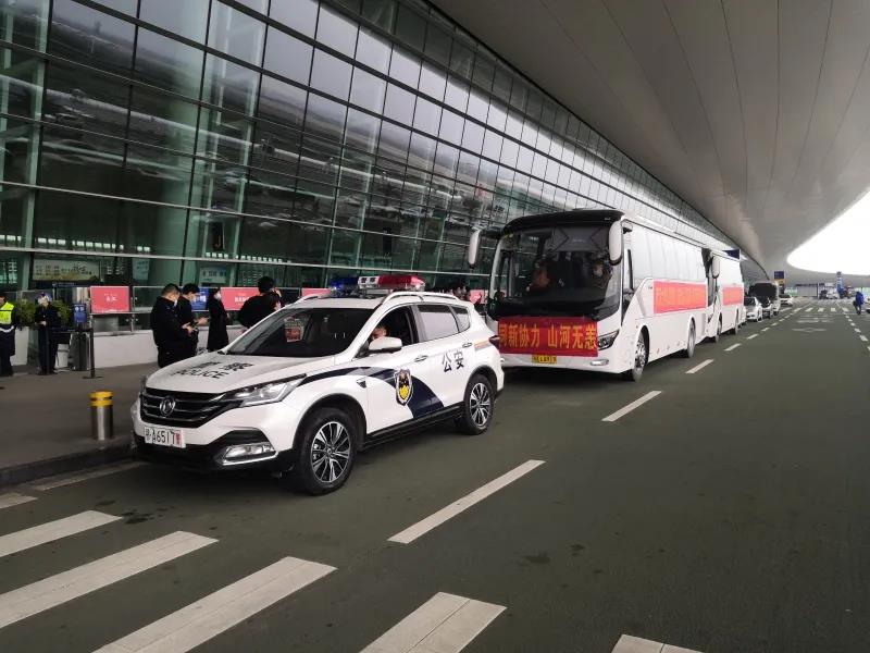 机场工作人员与新疆援鄂医疗队员一起跳新疆舞